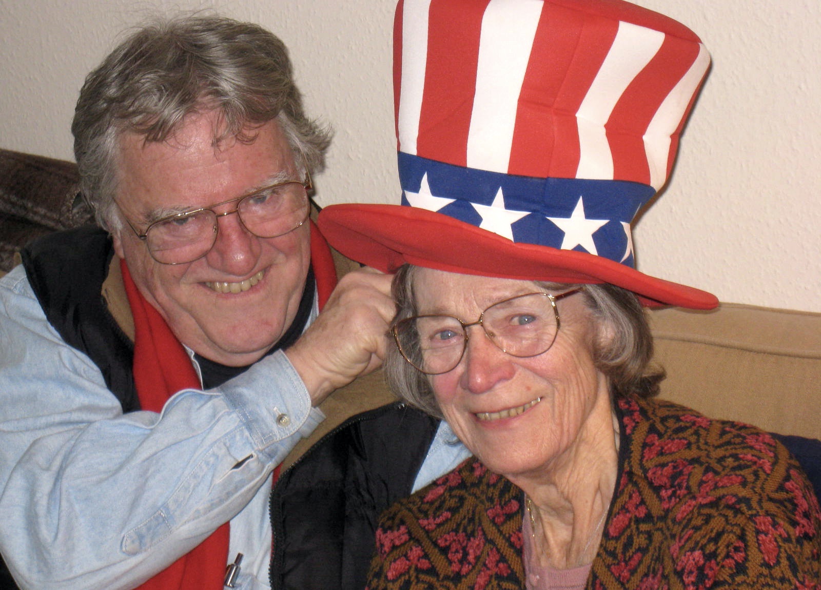 In January 2001, Jed, Ruth, Dennis and I joined together to watch the USA Inauguration of Bush Jr ("Shrub") on TV. We had bubbly, but also slippers to throw at the TV screen.